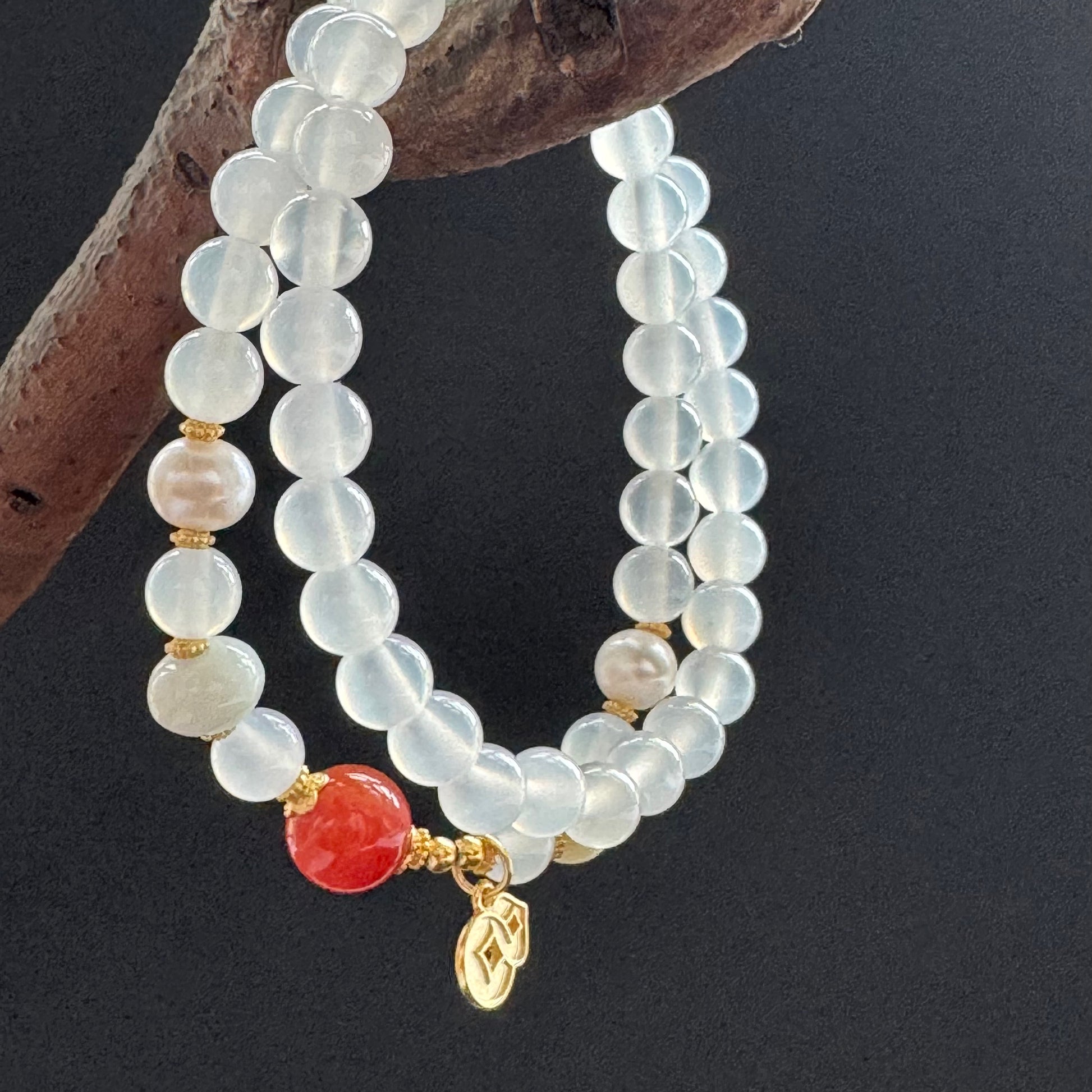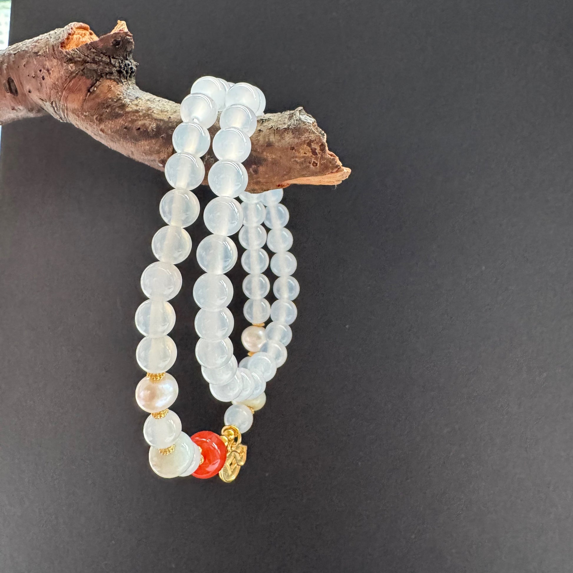 • 材質:南紅、翡翠、白瑪瑙、天然淡水珍珠、銀鍍18k金配件